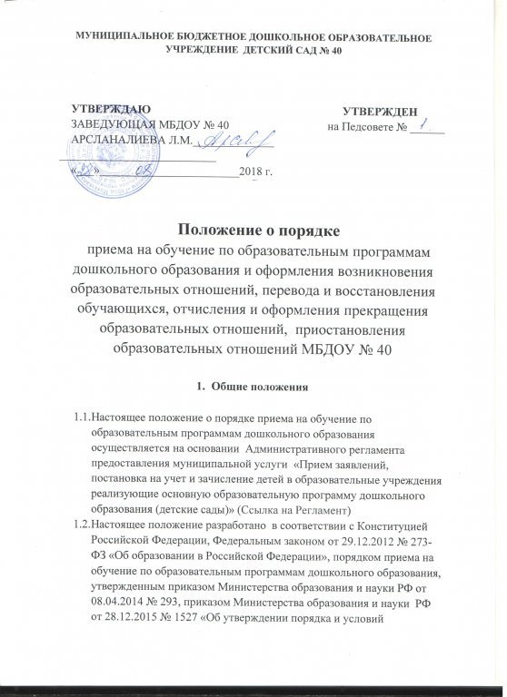 Порядок и основания перевода, отчисления и восстановления обучающихся (воспитанников)